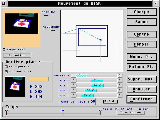 5/98 : On peut directement éditer un objet du projet (mouvement, tranparence...) directement en lui double cliquant dessus